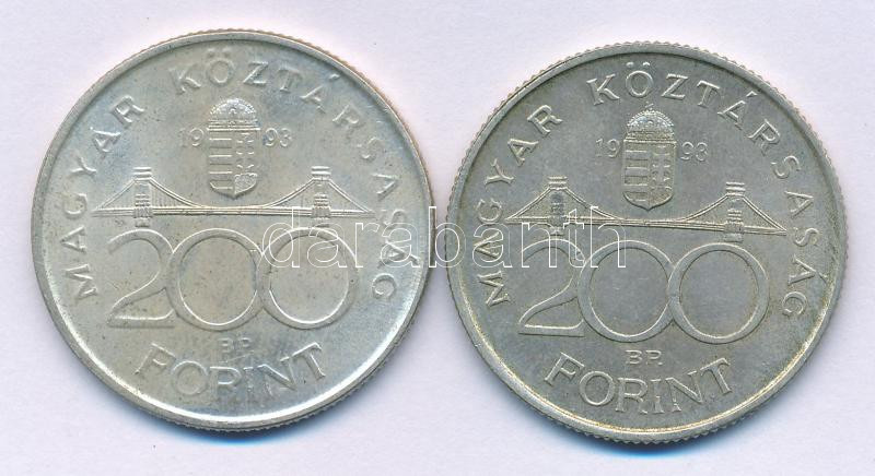 Leírás: 1993. 200Ft Ag "MNB" (2x) T:XF patina