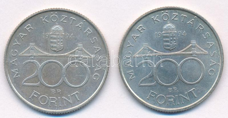 Leírás: 1994. 200Ft Ag "Deák" (2x) T:AU,XF