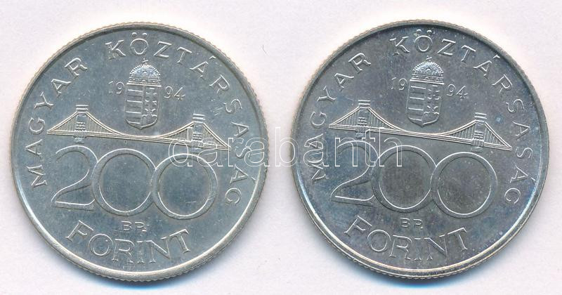 Leírás: 1994. 200Ft Ag "Deák" (2x) T:AU,XF