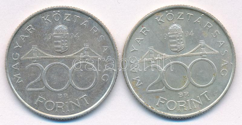 Leírás: 1994. 200Ft Ag "Deák" (2x) T:AU,XF kis patina