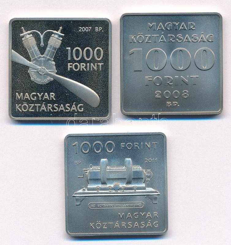 Leírás: 2007. 1000Ft Cu-Ni "Adorján János - Libelle" kapszulában + 2008. 1000Ft Cu-Ni "Telefonhírmondó - Puskás Tivadar" kapszulában + 2011. 1000Ft Cu-Ni "Jedlik Ányos - a Dinamó-elv leírója" kapszulában T:PP,BU