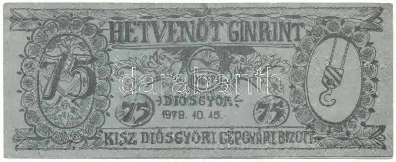 1979. 75 Ginrint "KISZ Diósgyőri Gépgyári Bizott." T:F https://www.darabanth.com/hu/477-Gyorsarveres/477.0/Numizmatika/Papir-es-fem-szuksegpenzek~500008/1979-75-Ginrint-KISZ-Diosgyori-Gepgyari-Bizott-TF~II3248176