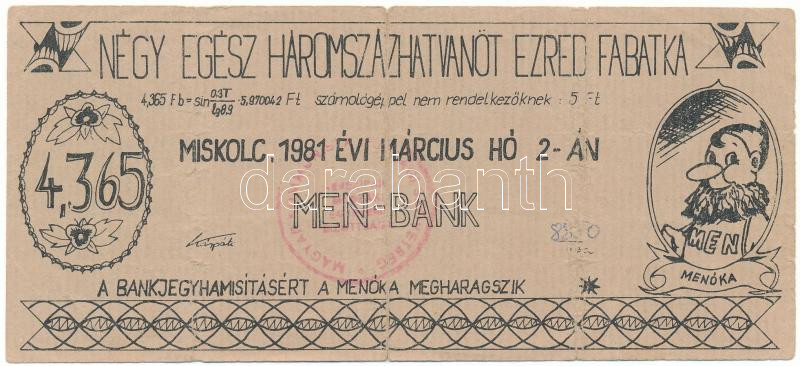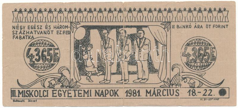 Leírás: 1981. 4,365 Fabatka "III. Miskolci Egyetemi Napok" utalvány T:F