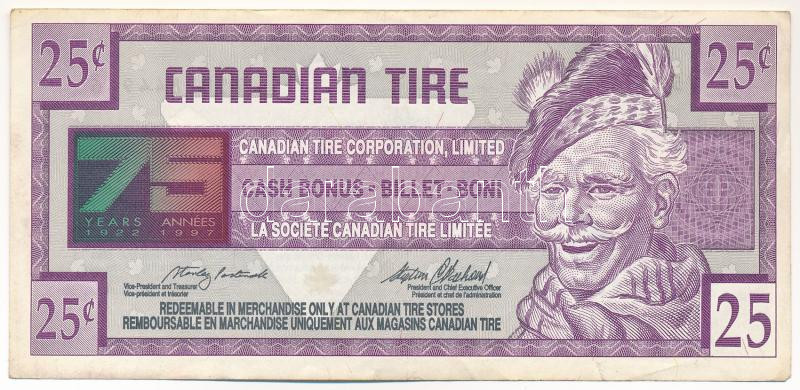Leírás: Kanada 1996. 25c "Canadian Tire Corporation - 75. évforduló" vásárlási utalvány T:F kis szakadás