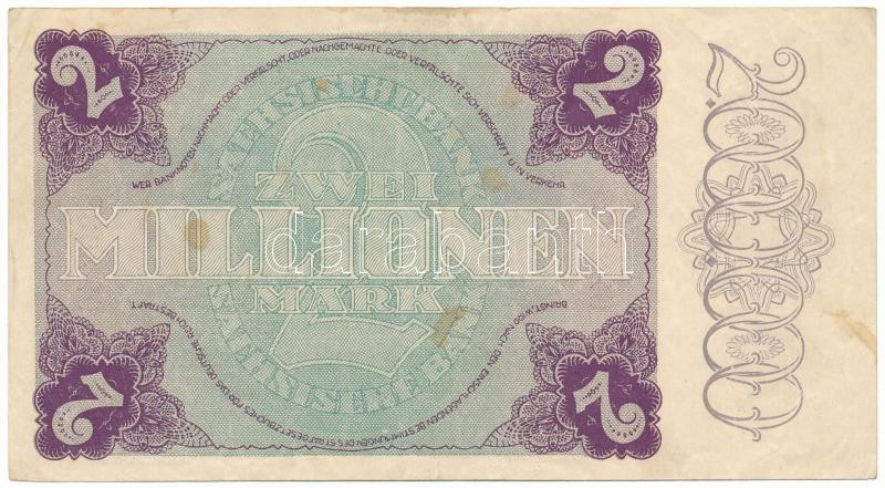 Német Birodalom / Szászország 1923. 2.000.000M T:F folt, erős papír
