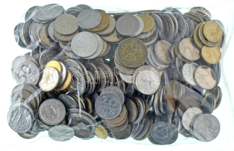 Vegyes, magyar és külföldi érmetétel mintegy ~1kg súlyban, szövet pénzeszsákban (26x18cm) T:vegyes Mixed, Hungarian and foreign coin lot (~1kg) in a cloth money bag (26x18cm) C:mixed