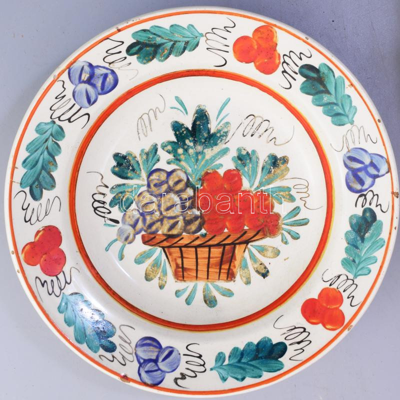 Leírás: cca 1890/1900 Nagy Zsigmond és fiai Apátfalva dísztál. Jelzett, mázsérülésekkel, d: 23 cm