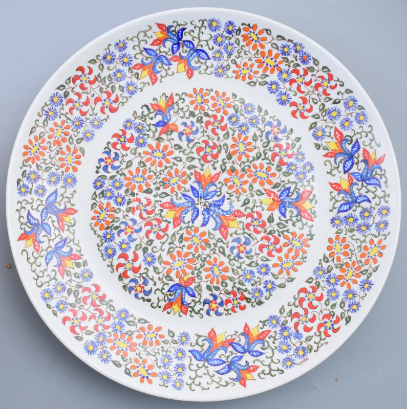 Leírás: 1973, Cepelia Opolska lengyel iparművész falitál. Kézzel festett porcelán, jelzett, d: 32 cm /// 1973, Cepelia Opolska Polish decorative wall plate. Hand-painted porcelain, signed, diameter: 32 cm. /// 1973, Cepelia Opolska polska dekoracyjna talerz ścienny. Ręcznie malowana porcelana, sygnowana, średnica: 32 cm.