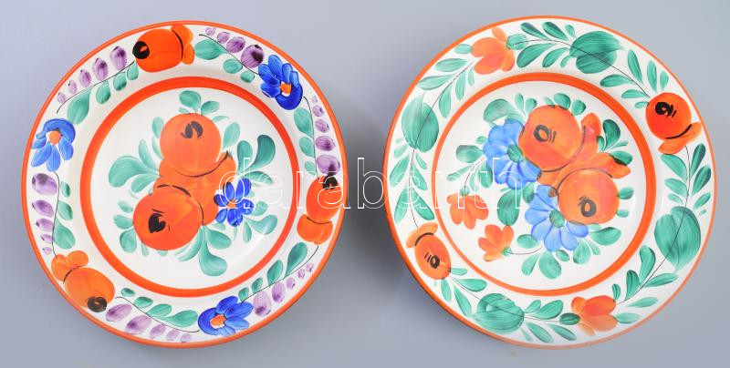 Leírás: Wilhelmsburg 2 darab antik tál, egyik jelzett, egyik repedéssel, d: 22,5 cm