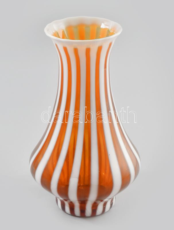 Csíkos retro váza. Formába öntött, anyagában színezett, hibátlan 21 cm https://www.darabanth.com/hu/477-Gyorsarveres/477.0/Porcelan-keramia-uveg/Uvegtargyak~1000008/Csikos-retro-vaza-Formaba-ontott-anyagaban-szinezett-hibatlan-21-cm~II3249132