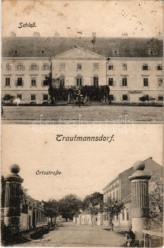 Leírás: 1921 Trautmannsdorf an der Leitha, Schloss, Ortstraße / castle, street view (fl)