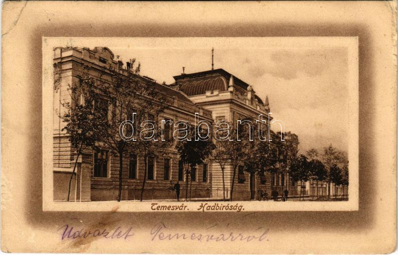 1915 Temesvár, Timisoara; Hadbíróság / court martial (EK) https://www.darabanth.com/hu/478-Gyorsarveres/478.0/Kepeslapok/Erdely~1000006/1915-Temesvar-Timisoara-Hadbirosag-court-martial-EK~II3255071