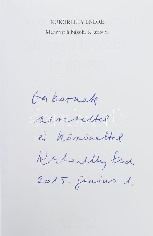 Kukorelly Endre: Mennyit hibázok, te úristen. DEDIKÁLT! Pozsony, 2010.... https://www.darabanth.com/hu/478-Gyorsarveres/478.0/Konyvek/Konyvek-Egyeb-ritkasagok~298/Kukorelly-Endre-Mennyit-hibazok-te-uristen-DEDIKALT-Pozsony-2010-Kalligram-Kiadoi~II3239765