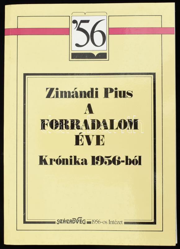 Zimándi Pius: A forradalom éve. Krónika 1956-ból. Bp., 1992, Századvég-1956-os Intézet. 390 p. Kiadói papírkötés, a könyvtest ragasztása elvált a borítótól.