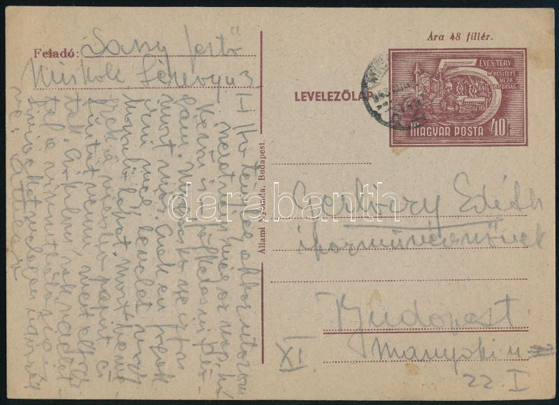 Leírás: 1953 Sassy Attila (1880-1967) festő saját kézzel írt levelezőlapja