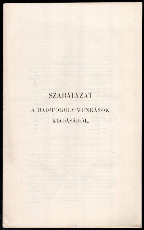 cca 1916 Szabályzat a hadifogoly munkások kiadásáról. 30 p. (Hadifogol... https://www.darabanth.com/hu/478-Gyorsarveres/478.0/Mutargy-papirregiseg-egyeb/Militaria~290/cca-1916-Szabalyzat-a-hadifogoly-munkasok-kiadasarol-30-p-Hadifogoly-munkaero-igenylese-veluk~II3262069