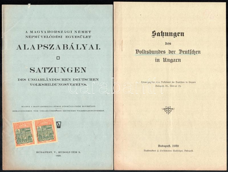 1925 A Magyarországi Német Népművelődési Egyesület Alapszabályai - Satzungen des Ungarländischen Deutschen Volksbildungvereins. 16p.