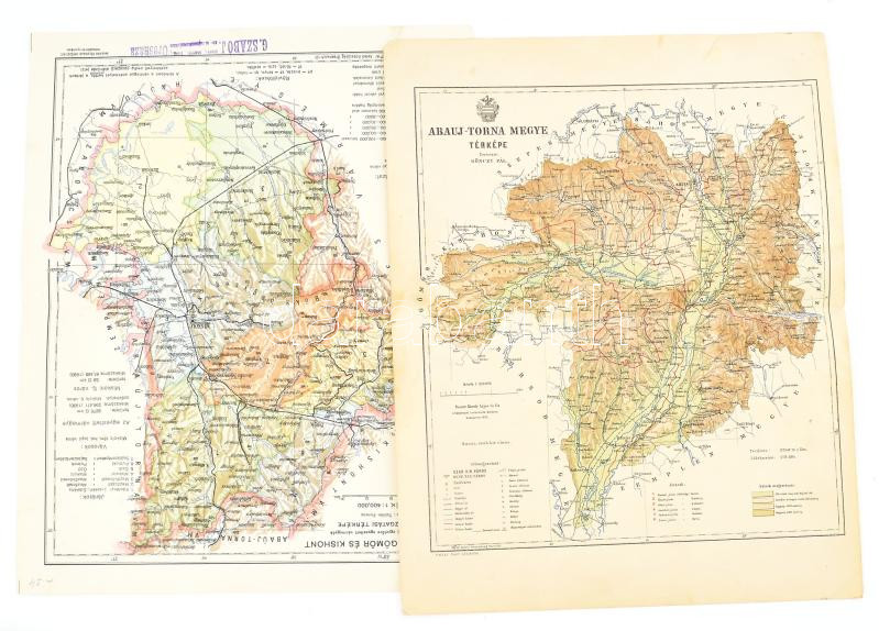 1892 Abaúj-Torna vármegye térképe, tervezte: Gönczy Pál, Bp., Posner Károly Lajos és Fia, a Pallas Nagy Lexikona melléklete, lapszéli szakadásokkal, 30,5x24 cm + cca 1925-1940 Borsod, Gömör és Kishont közigazgatásilag egyelÅ‘re egyesÃtett vármegyék közigazgatási térképe, terv.: Tallián Ferenc, Bp., Magyar Földrajzi Intézet R.T., 30x23,5 cm