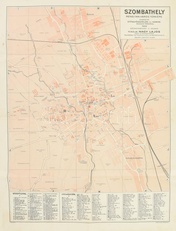 1928 Szombathely rend. tan. város térképe, kiegészítve Gyöngyösszőllős és Kámon községek térképével, 1 : 10.000, kiadja: Nagy Lajos könyv- és papírkereskedése, minimálisan foltos, 62,5x47 cm