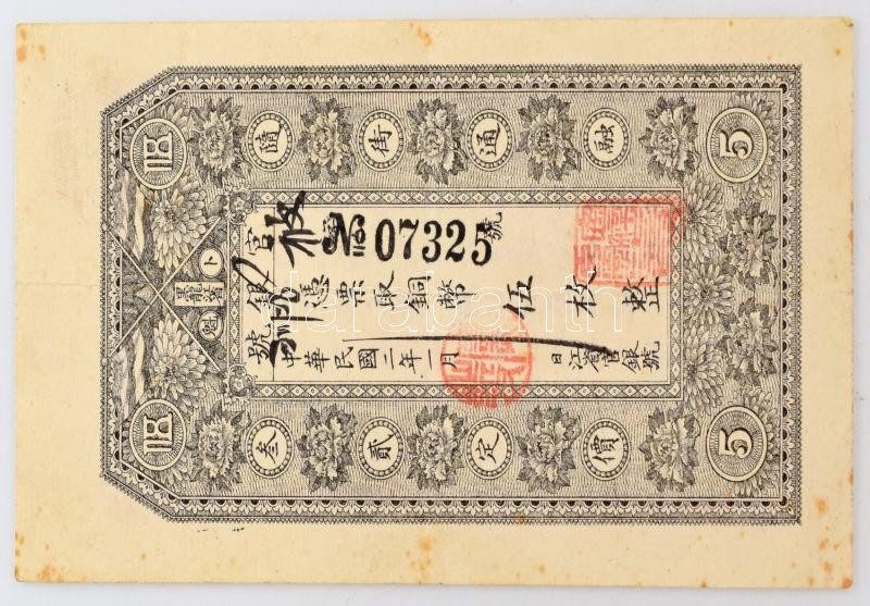 Kína 1913. 5C "Hio Lung Kiang Government Bank" T:F szép papír, folt