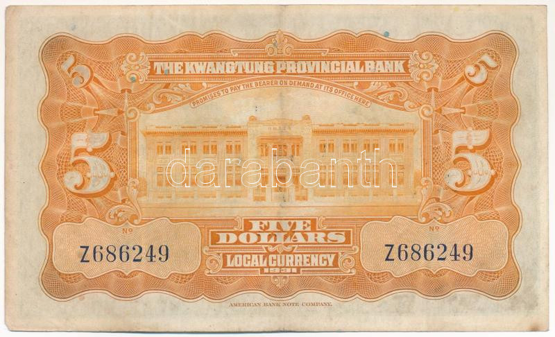 China 1931. ... https://www.darabanth.com/hu/478-Gyorsarveres/478.0/Numizmatika/Kulfoldi-bankjegyek~2000015/Kina-1931-5USD-Kwangtung-Provincial-Bank-T-F-eros-papirChina-1931-5-Dollars-Kwangtung~II3251036