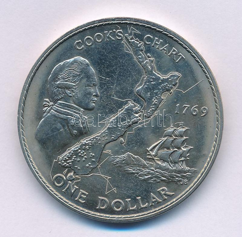Leírás: Új-Zéland 1969. 1$ Cu-Ni "II. Erzsébet / Cook megérkezésének bicentenáriuma" T:AU