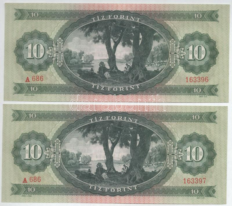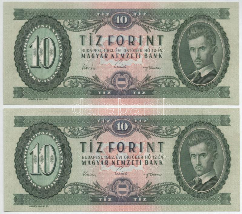 Leírás: 1962. 10Ft (2x) sorszámkövető "A 686 163396 - A 686 163397" T:XF Adamo F6