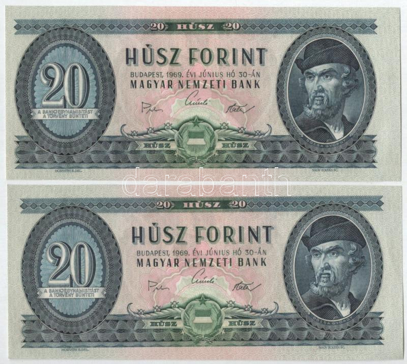 1969. 20Ft (2x) sorszámkövetők " C 453 023232 - C 453 023233" eltolódo... https://www.darabanth.com/hu/478-Gyorsarveres/478.0/Numizmatika/Magyar-bankjegyek~2000008/1969-20Ft-2x-sorszamkovetok-C-453-023232-C-453-023233-eltolodott-nyomat-T-AU-hullamos~II3253225