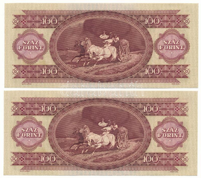 Leírás: 1975. 100Ft (2x) sorszámkövetők "B 315 112038 - B 315 112039" T:UNC hullámos papír Adamo F33