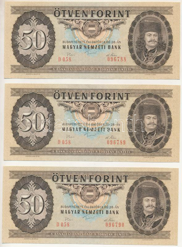1975. 50Ft (3x) sorszámkövetők "D 058 096788 - D 058 096790" T:UNC