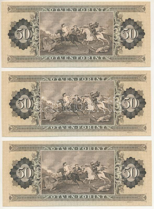 Leírás: 1975. 50Ft (3x) sorszámkövetők "D 058 096788 - D 058 096790" T:UNC
