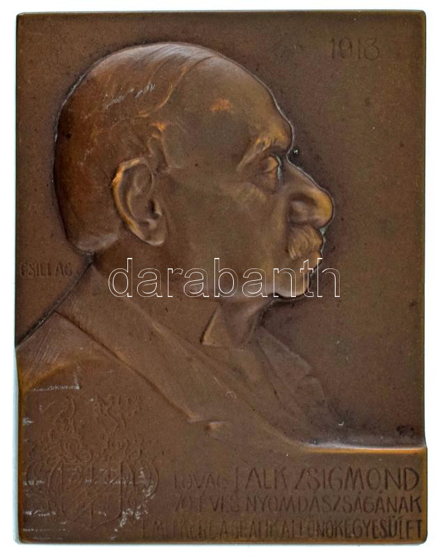 Leírás: Csillag István (1881-1968) 1913. "lovag Falk Zsigmond 70 éves nyomdászságának emlékére" bronz emlékplakett (47x60mm) T:AU,XF