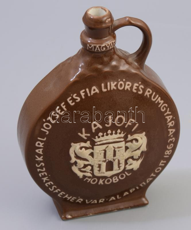 Leírás: Zsolnay Kajofi. Karl József és fia likőr és rumgyára Hokobol. Mázas fajansz kulacs dombornyomott címerrel. Jelzett, hibátlan, m: 16 cm