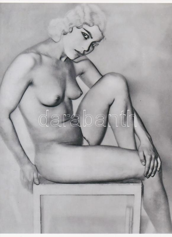 cca 1934 Man Ray (1890-1976) amerikai fotóművész, a dadaizmus és a szürrealizmus egyik meghatározó művészének alkotása (Szolarizált akt egy hokedlin), 1 db modern nagyítás a néhai Fotószemle (1938-1943) című szaklap hagyatékából, jelzés nélkül, 21x15 cm
