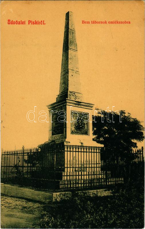 1908 Piski, Simeria; Bem tábornok emlékszobor. W.L. 3131. / monument (... https://www.darabanth.com/hu/479-Gyorsarveres/479.0/Kepeslapok/Erdely~2000006/1908-Piski-Simeria-Bem-tabornok-emlekszobor-WL-3131-monument-EK~II3265821