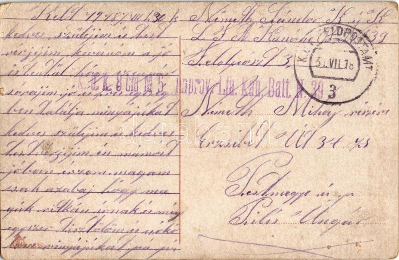 1918 Erstürmung befestigter feindlicher Stellungen durch die verbündeten Truppen / WWI German and Austro-Hungarian K.u.K. military art postcard. L&P. 1838. + "K.u.K. 8 cm M 5 improv. Lfa. Kan. Batt. N. 39" "K.U.K. FELDPOSTAMT 3" (EB)