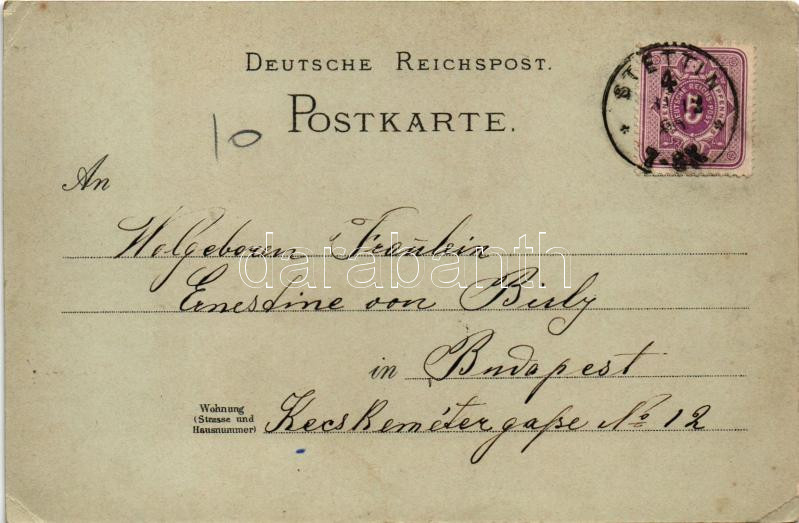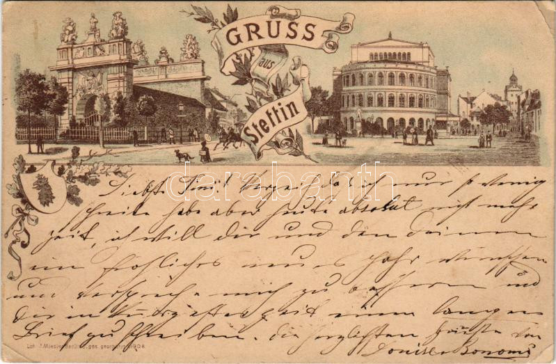 Leírás: Szczecin, Stettin; Royal Gate, Theatre. Lith. J. Miesler Art Nouveau, floral, litho with coat of arms (EK)