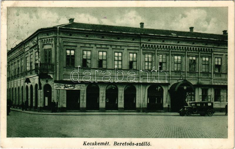 1936 Kecskemét, Hotel Beretvás szálloda, étterem és kávéház, automobil... https://www.darabanth.com/hu/479-Gyorsarveres/479.0/Kepeslapok/Magyarorszag~2000005/1936-Kecskemet-Hotel-Beretvas-szalloda-etterem-es-kavehaz-automobil-Minden-este-Kovary-szalon~II3263704