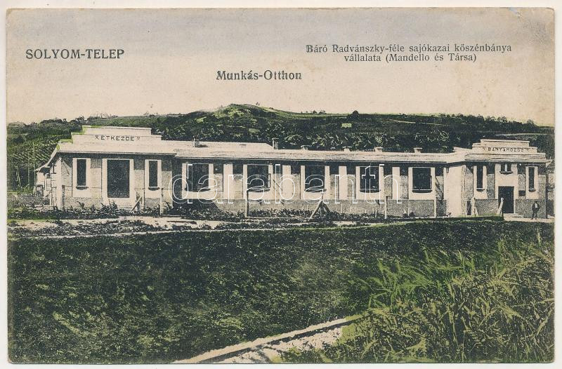 1940 Sajókaza, Sólyom telep, Báró Radvánszky-féle kőszénbánya vállalat... https://www.darabanth.com/hu/479-Gyorsarveres/479.0/Kepeslapok/Magyarorszag~2000005/1940-Sajokaza-Solyom-telep-Baro-Radvanszky-fele-koszenbanya-vallalata-Mandello-es-Tarsa-~II3266612