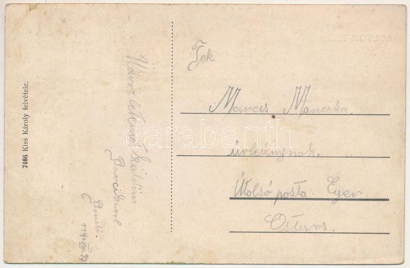 Leírás: 1940 Sajókaza, Sólyom telep, Báró Radvánszky-féle kőszénbánya vállalata (Mandello és Társa), Munkás Otthon, étkezde, bányamozgó (mozi). Kiss Károly felvétele (ázott / wet damage)
