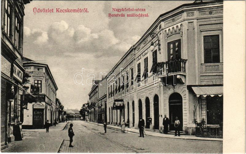 Kecskemét, Nagykőrösi utca, Beretvás szálloda, üzletek. Fekete (Schwar... https://www.darabanth.com/hu/479-Gyorsarveres/479.0/Kepeslapok/Magyarorszag~2000005/Kecskemet-Nagykorosi-utca-Beretvas-szalloda-uzletek-Fekete-Schwartz-Soma-kiadasa~II3263712