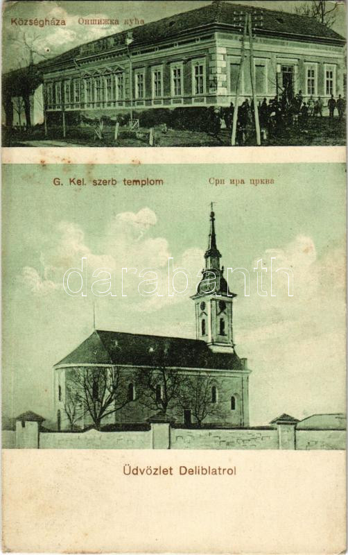 Deliblát, Deliblato; Községháza, Görögkeleti szerb templom / town hall... https://www.darabanth.com/hu/479-Gyorsarveres/479.0/Kepeslapok/Vajdasag~2000010/Deliblat-Deliblato-Kozseghaza-Gorogkeleti-szerb-templom-town-hall-Serbian-Orthodox-church-fl~II3268254