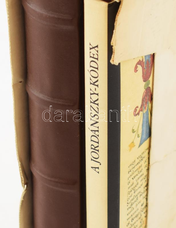 A Jordánszky-kódex. Magyar nyelvű bibliafordítás a XVI. század elejéről [1516-1519]. Az Esztergomi Főszékesegyházi Könyvtárban őrzött, 1516-1519 között készült MSS. II. 1 jelzetű kódex hasonmása, illetve szövegének olvasata. (Hasonmás és tanulmánykötet, két kísérőfüzettel). Bp., 1984, Helikon. Kiadói bordázott gerincű, kapcsos, fémveretekkel díszített egészbőr-kötés, illetve kiadói kartonált papírkötés, kiadói papír védőborítóban, kissé sérült kiadói kartontokban, jó állapotban.