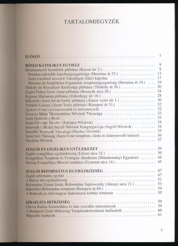 Leírás: Zugló templomai és történelmi egyházai. Zuglói füzetek. Bp., 2001, Herminamező Polgári Köre. Fekete-fehér fotókkal illusztrálva. Kiadói tűzött papírkötés.