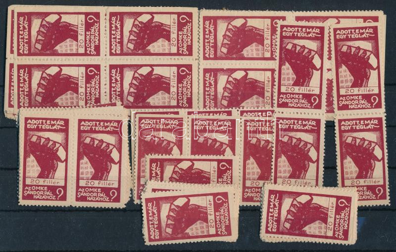 Leírás: 1927 Adott már egy téglát az OMKE Sándor Pál Házához? levélzáró sok példányban, részben összefüggésekben, stecklapon
