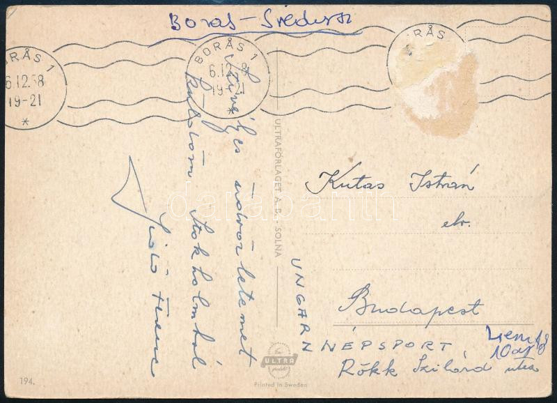 Leírás: 1958 Sidó Ferenc világbajnok asztaliteniszező által írt képeslap