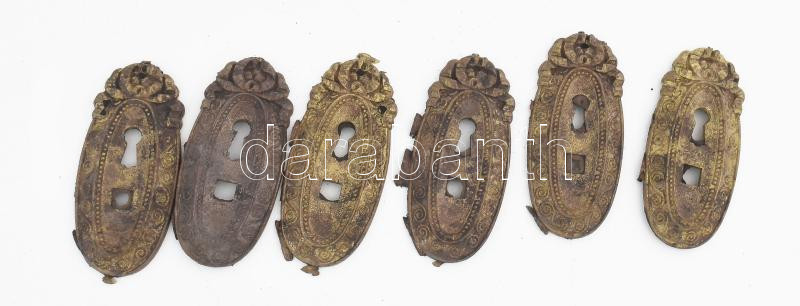 Leírás: 6 darab bronz zárcímer, h: 9 cm