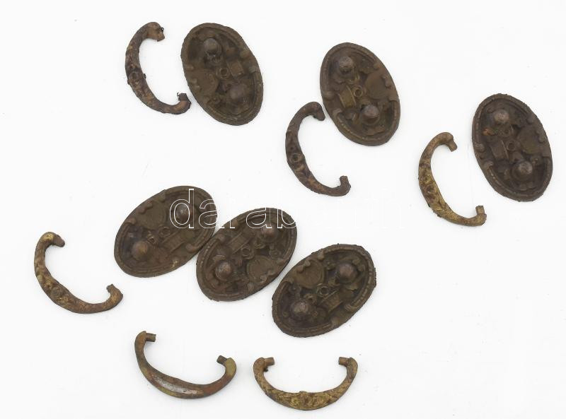 Leírás: 6 darab régi bronz fiókhúzó gomb, h: 5 cm