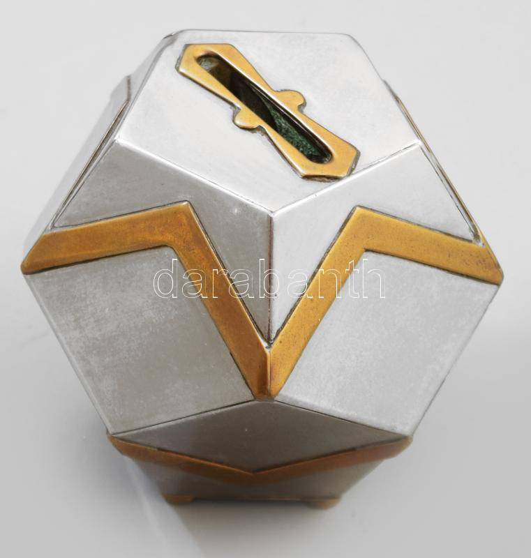 Leírás: Art deco stílusú fém persely, m: 8 cm