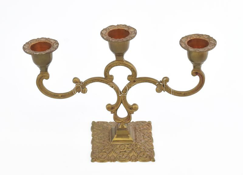 Leírás: Háromágú gyertyatartó, réz 21x15 cm
